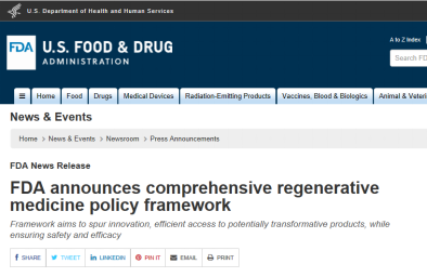 美國食品和藥物管理局11月16日宣布,它正在發(fā)布一個新的政策框架,可以更迅速地為患者提供涉及人體細(xì)胞和組織(如干細(xì)胞)的治療,同時對引起安全問題的產(chǎn)品加強執(zhí)法力度。FDA專員Scott Gottlieb博士表示:我們正在采用建立在現(xiàn)有法規(guī)基礎(chǔ)上的,基于風(fēng)險…